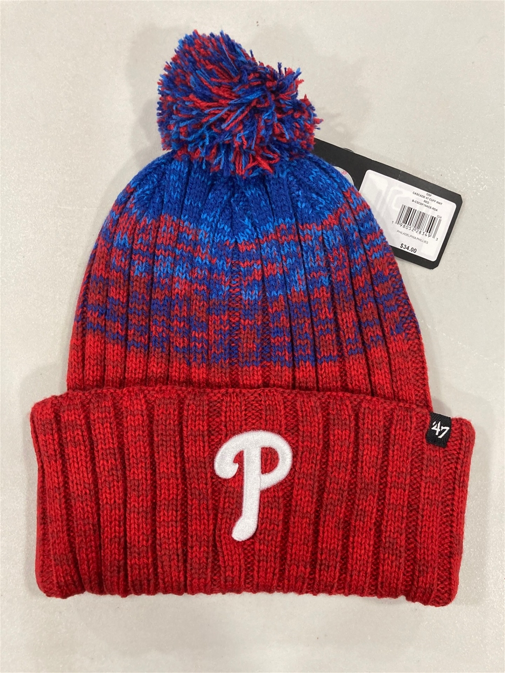 Bulk Promo Purchase at least 144 and save $1.00 each Philadelphia Phillies MLB Red Cascade Knit Cuff Pom *NEW* Retail Price: $34.00 Price: $11.50 SKU198052283493 138 units available - + (min 6) Add to wishlist Email a friend Tweet Other products by '47 Brand