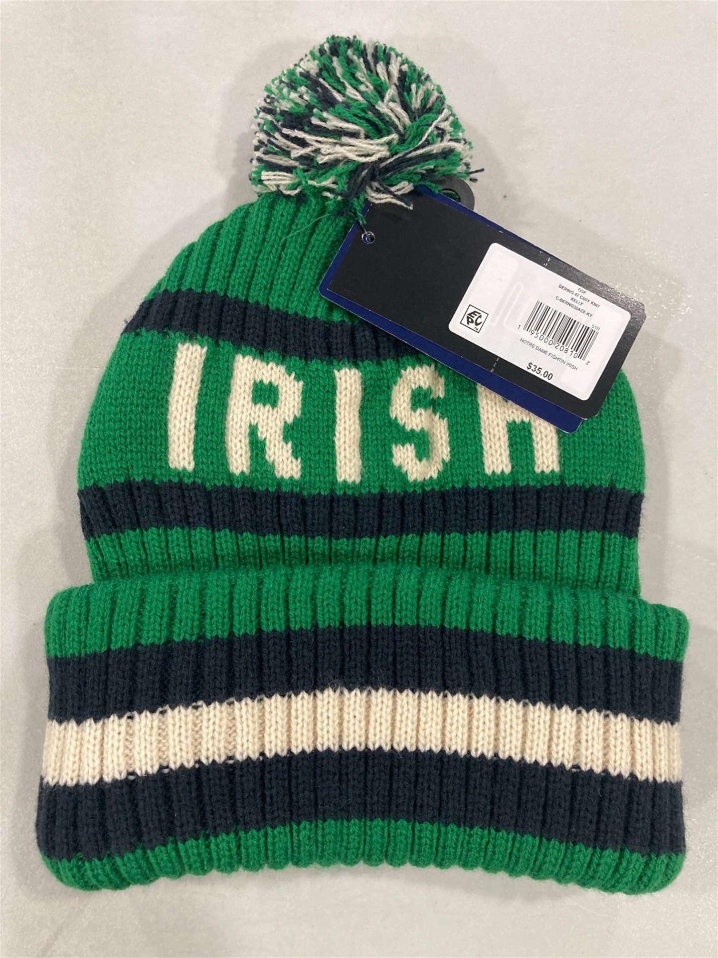 Notre Dame Fighting Irish NCAA Kelly Bering Knit Cuff Pom *NEW* Retail Price: $35.00 Price: $11.00 SKU195000208102 The product is currently out of stock, current quantity is 0 Add to wishlist Email a friend Tweet Other products by '47 Brand