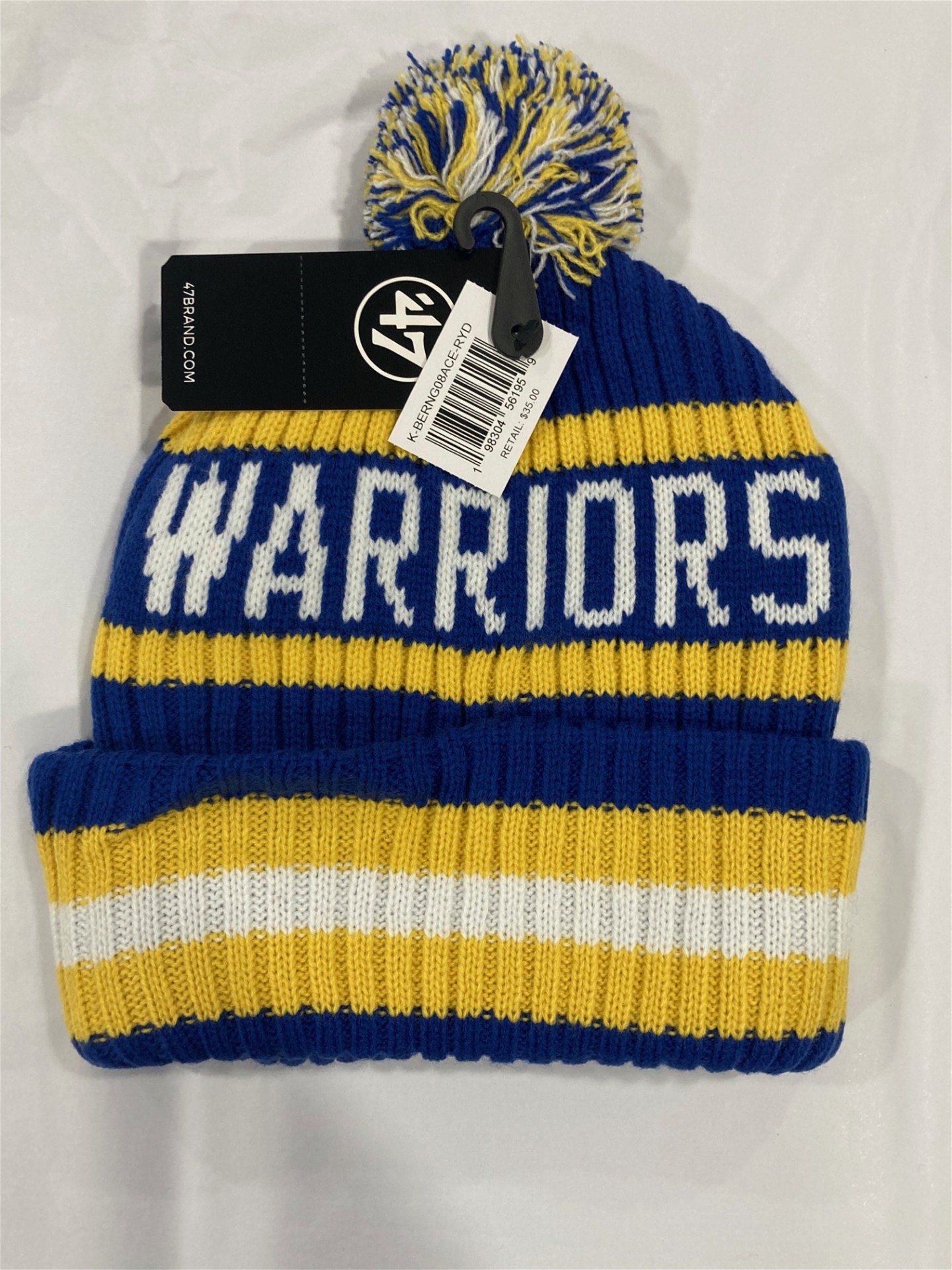 Golden State Warriors NBA Royal Bering Knit Cuff Pom *NEW* Retail Price: $35.00 Price: $11.50 SKU198304561959 18 units available - + (min 6) Add to wishlist Email a friend Tweet Other products by '47 Brand