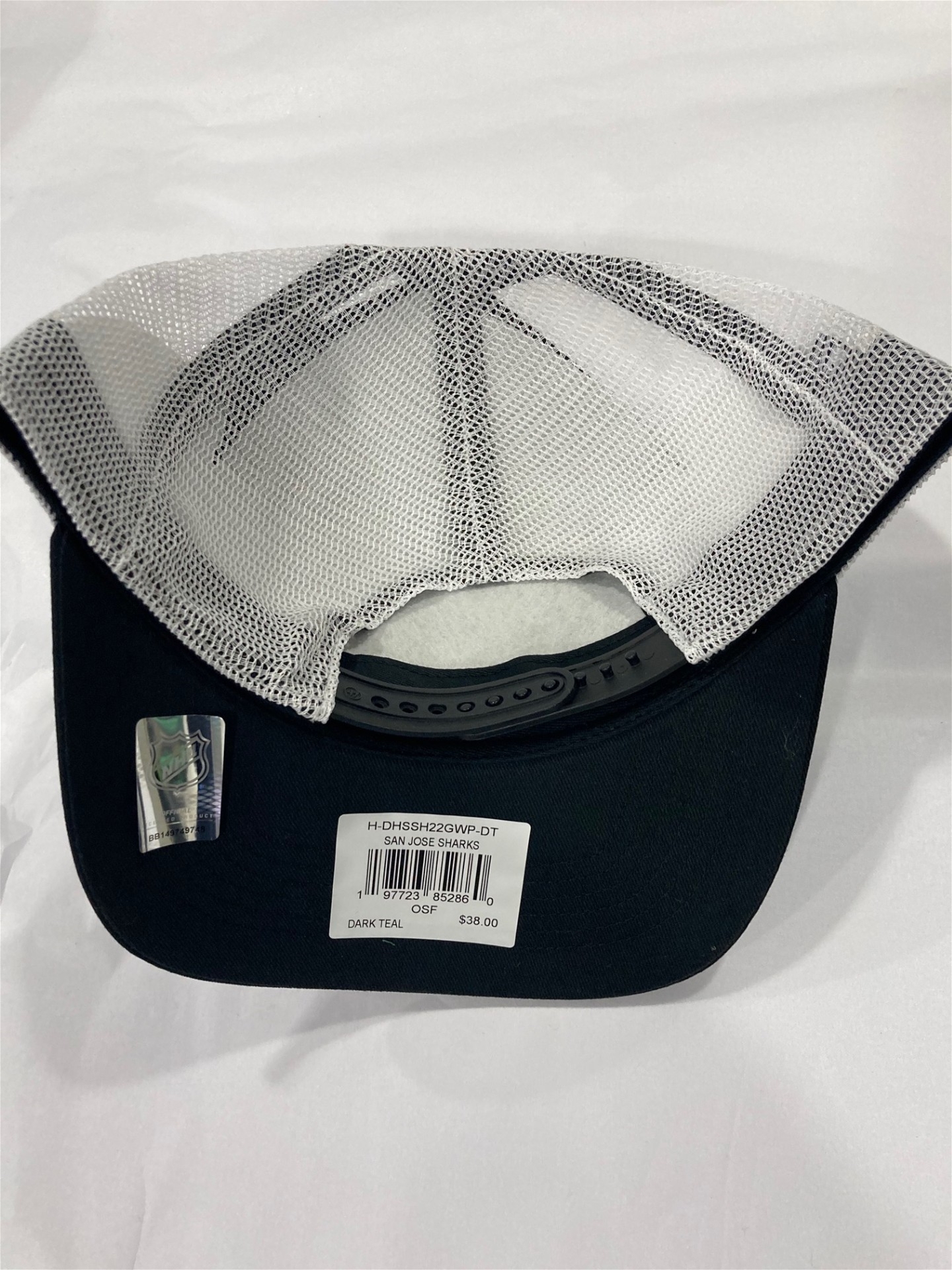 San Jose Sharks NHL Dark Teal Double Header Mesh Hitch Snapback Hat *NEW* Retail Price: $38.00 Price: $11.00 SKU197723852860 16 units available - + (min 6) Add to wishlist Email a friend Tweet Other products by '47 Brand
